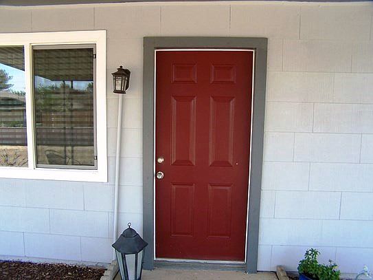 SWEET SURPRISE IN THE SOUTHWEST! An absolutely beautiful upgraded and well-maintained home! Living room has ample space with rich dark walnut wood laminate flooring & ceiling fan. Natural light flows through the upgraded dual pane windows shaded with wooden blinds. Upgraded kitchen with granite countertops, stainless steel sink, and redwood finished cabinets. Matching stainless steel 2-door bottom refrigerator & gas stove are just two years old. Master bedroom is roomy with sliding closet, ceiling fan, and less than 2-yr old tan carpet. Corian counters & tile on the floor in master bathroom. Hall bathroom has been upgraded with tile floor and Corian counter. Vintage garden green sink backsplash and tub tile makes for a classy look and feel here!! Interior laundry includes washer & gas dryer. Two roof-mounted MasterCool units keep it cool this summer. Wall heaters do a fantastic job in keeping the home winter warm! Don't miss the relaxing shaded beachy patio out back! Great place for gatherings & family. Detached 2-car garage with workbenches. Deep & wide driveway for RV. 20 ft wooden gate opens to huge backyard! Masonry wall in front and sides. A CONVENIENT QUIET NEIGHBORHOOD!