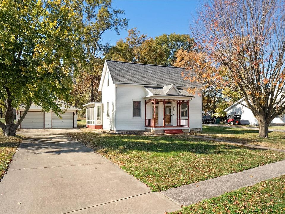Small town living at its best! Check out this historical farm house on the back edge of town. The front porch is just gorgeous with all of its original woodwork and wonderful original front doors. So many extras including the nice concrete driveway, large two car garage with opener, and the glass enclosed large back porch with ceramic floor. The original hardwood floors in the living room and main floor bedroom are in excellent condition along with all the wonderful original millwork and transom windows. All the appliances stay including the washer and dryer. The eat-in kitchen is spacious, plenty of room for a large table and chairs. The open staircase leads to the second level where you will find three additional bedrooms. The basement is one room which is great for storage and has been repaired by LS Waterproofing. All info should be verified by buyer or buyer's agent.