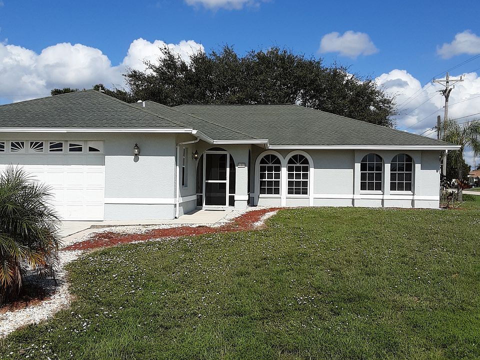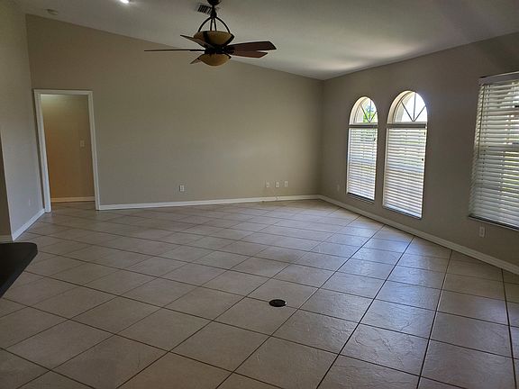Large family home centrally located in safe family neighborhood, large back yard with shade tree, 2 large walk in closets in master, walk in closets other 2 bedrooms, double vanity dressing area in addition to master bath that includes jetted soaking tub and walk in shower, laundry room with soaking tub, washer & dryer, front entry hall with closet, and new air conditioner. Includes lawn care. Yearly lease. No pet fees. This is Cape Coral and so there are community rules as to what types of vehicles can be parked in driveway. No parking on lawn or working on vehicles on property outside of routine car maintenance.