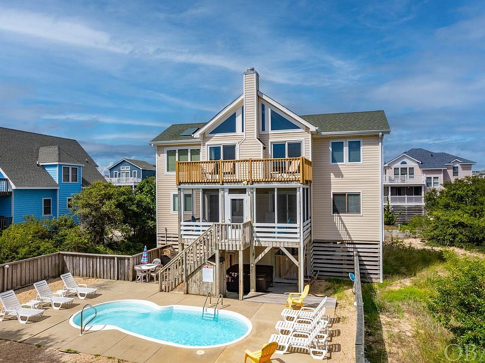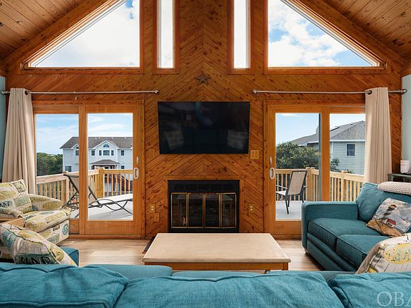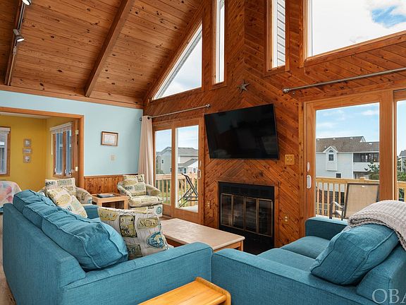 Ocean Sands vacation home just 450’ from the beach access now available! This charming 4 bedroom, 2.5 bath property is located any easy walk to the beach and features gorgeous natural beamed cathedral ceilings in the open family room & dining areas, renovated kitchen with granite, sunroom with bar area, and mid-level screened porch. A bonus room on the top level offers additional sleeping space or could be used as an office or playroom. Additionally, the property has a spacious pool area, private hot tub, and outside shower. This community is perfect for walking or bike riding and is close to the shopping, restaurants, and attractions of the northern OBX beaches.