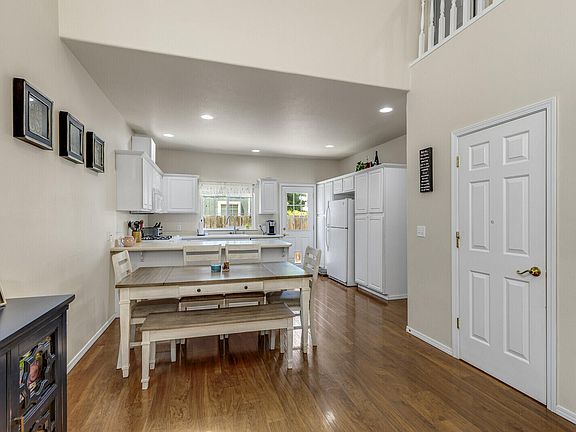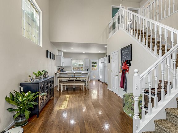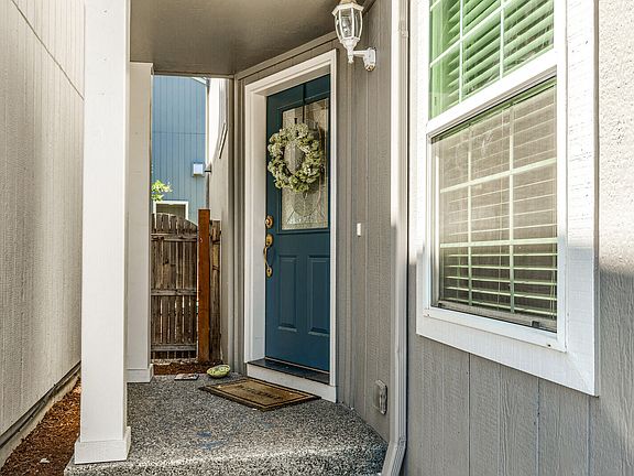 **ASSUMABLE FHA Loan with a 3.5% interest rate through Guild Mortgage** As you enter this light and bright two story home, the soaring ceiling and laminate floors provide a warm welcome. The main level offers a spacious living room with gas fireplace; kitchen with breakfast bar, ample cabinet space, and access to the back yard; powder room; access to the tandem 2-car garage; and a carpeted staircase leading to the second floor. Located upstairs are 2 nicely sized guest bedrooms; a guest bathroom with tile floor, single sink vanity and tub/shower; laundry room with upper cabinet and shelf; and the primary suite. The large primary bedroom boasts a walk-in closet, window with bench seat, private covered balcony, and ensuite with tile floor, single sink vanity, and step-in tile shower. The low maintenance back yard has a patio and gated dog run. This home is turnkey and ready for its new owners! Come see it today!