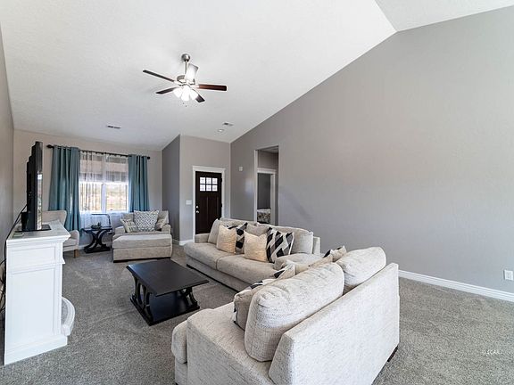 Almost brand new home on 10 acres, all 3 sides are fenced, and it had its own private well! This 4 bedroom, 2 bath Beck Built Home was just completed in 2021. This home features MANY beautiful builder upgrades including stone veneer exterior, additional cabinetry, double wall oven, rain shower head in master bath, pull handles on drawers. In addition to granite counter tops, soft close cabinets and drawers, tile floors in the kitchen, laundry and baths, vaulted ceiling, central air, all stainless steel appliances including microwave, electric smooth top range, double wall oven, and refrigerator. Property was just surveyed as well!