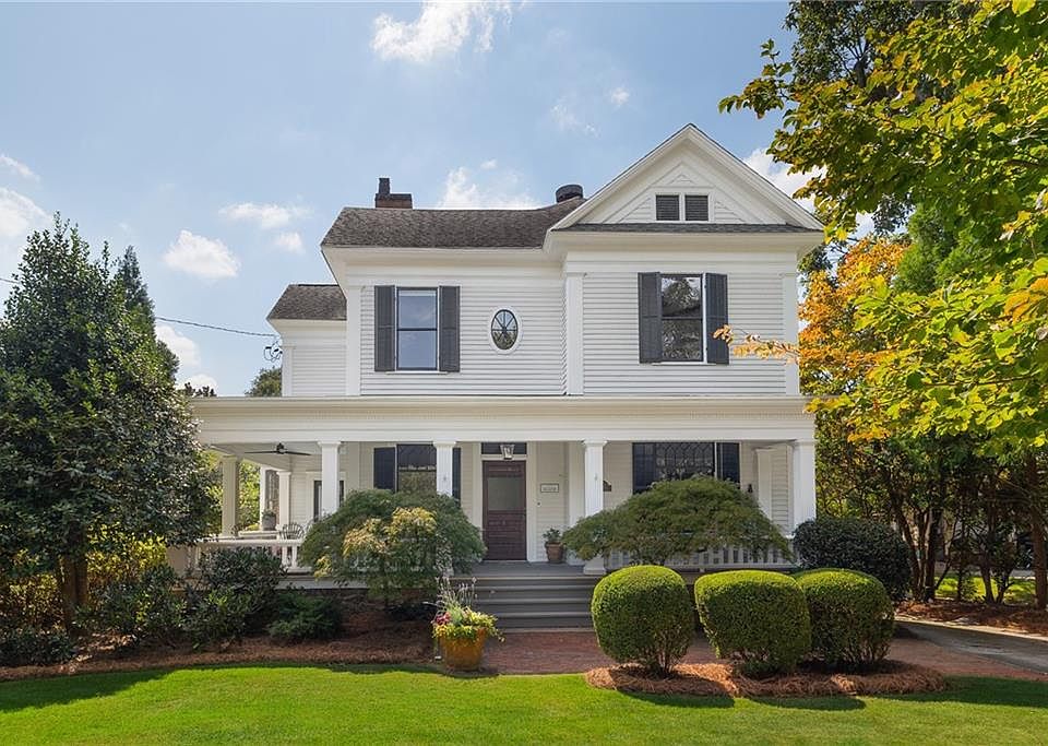 Nestled just steps from the lively Decatur Square, this magnificent turn-of-the-century Victorian manor captures the essence of a bygone era while seamlessly blending modern comforts. With four generously sized bedrooms and 3.5 bathrooms, this meticulously maintained home is a showcase of timeless architectural details and classic elegance. A welcoming wrap-around porch beckons as you approach, providing the ideal setting for morning coffee or evening relaxation. The parlor entryway showcases original fir millwork, setting a captivating tone of historic charm that pervades the entire residence. High ceilings reaching 12 feet and heart-pine floors create an inviting atmosphere in the formal dining room, making it perfect for hosting gatherings and special occasions. The kitchen is a culinary enthusiast's dream, recently remodeled to feature high-end appliances, a generously sized granite island, and a chef's dream stove-hood. The home also boasts a picturesque library and an adjoining formal living area, both equipped with custom fireplaces, offering cozy spaces for relaxation and entertainment. Abundant natural light graces the family room through tall windows, illuminating a functional office nook. Upstairs, a spacious primary suite awaits, with dual closets and breathtaking views of a 40-foot lap pool, complemented by a serene brick patio, offering an idyllic outdoor oasis. Situated in the heart of Decatur, this property enjoys unparalleled access to the vibrant Decatur Square, renowned for its eclectic mix of shops, restaurants, and cultural events. This prime location also provides easy access to nearby amenities, schools, and parks, making it a coveted destination for those seeking the perfect blend of historic charm and modern convenience.