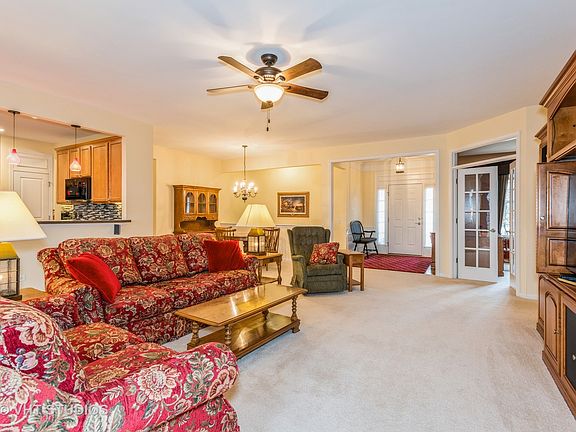 Welcome to the perfect ranch (Cascade) with a rare full finished basement in the fantastic Edgewater by Del Webb (55+ community). From the moment you walk into the foyer, you will fall in love with the large open floor plan and 9 foot ceilings throughout and in the basement! Living room is open through cut-out to kitchen and also affords panoramic views to the back yard! Dining room has wainscoting and open to the kitchen for easy dining. Kitchen has hardwood flooring, center island, butler pantry, Corian counters, black appliances, and bay window in the eating area--to bring the outside in! 1st floor den and relaxing sunroom with sliding glass doors to enjoy ever-changing seasonal vistas! Both bedrooms (2nd bedroom is not shown as full of boxes) have California closets. Primary bedroom with walk-in closet, boxed bay windows, room darkening shades and primary bath with double sinks, whirlpool, and walk-in shower. Finished basement offers HUGE open expanse for all your needs with kitchenette, sink, and fridge and 1/2 bath. New roof in 2021. New furnace and A/C in 2020. You will totally enjoy the clubhouse for meeting your friends or playing cards, pool, workout room, tennis courts, and Bocce ball! Relax all year around with snow, grass, and landscaping taken care of for you! This is the perfect home to "age in place!" Close to shopping, dining, and road access. Come and make memories in this lovely home and community!