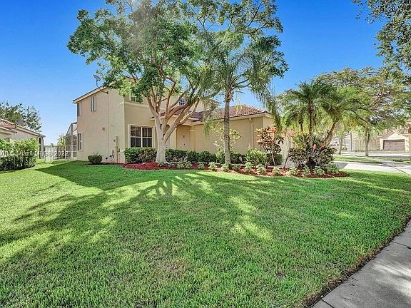 Beautiful Waterfront Home located in the desirable The Meadows, gated community in Weston. Spacious split floor plan with vaulted ceilings. 4 Bedrooms + an Office and 2.5 Baths. A large enclosed patio and a pool. Great for entertaining inside or outside with an amazing water view of a beautiful lake. All fans and light fixtures were replaced. The Master bedroom features 2 walk-in closets and an enormous bathroom with a shower, a Roman tub, double vanities, and a separate toilet. The kitchen features granite countertops, wood cabinets and newer appliances and all 3 bathrooms have been renovated. Bedrooms have wood flooring. The living areas are tiled. Roof remains original and AC 8yrs old. All windows have accordion shutters around patio.