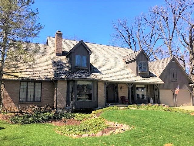 Hidden treasure! Tucked away at the end of a cul-de-sac! Surrounded by mature trees! Long driveway! Grand cedar shake roof! Covered front porch! Tile entry! Dramatic vaulted 2-story family room with brick fireplace, beamed ceiling and built-in oak wall unit! Bright eat-in kitchen with breakfast bar island, upgraded oak cabinetry, planning desk and extra recessed lighting! Separate formal dining room with bay picture window and solid oak built-in hutch! Formal living room with woodburning fireplace and custom mantle surround! Awesome 3 season room with wall of glass leads to the extensive custom deck with pergola and bench seating! 1st floor master suite with private bath with dual sink vanity, whirlpool tub and separate shower! Large 2nd floor bedrooms! Great option to convert walk in attic to a 4th bedroom if needed! Convenient 1st floor laundry with extra cabinets! Good size basement-perfect for storage! Close to I-90 access, schools! Peaceful setting! Solid Home!