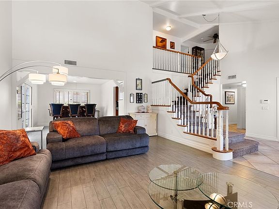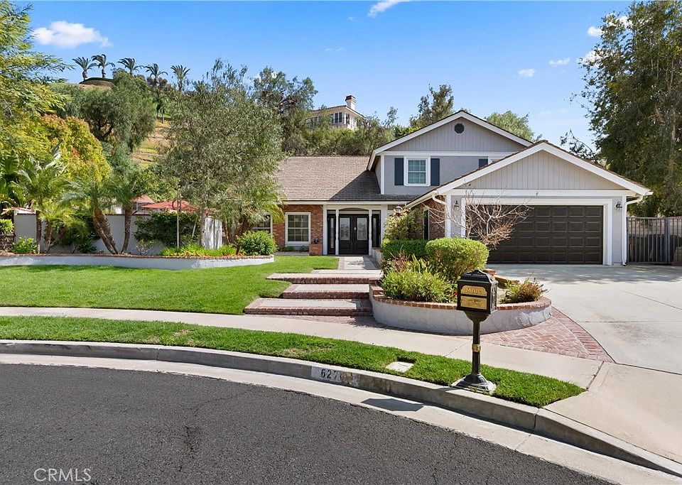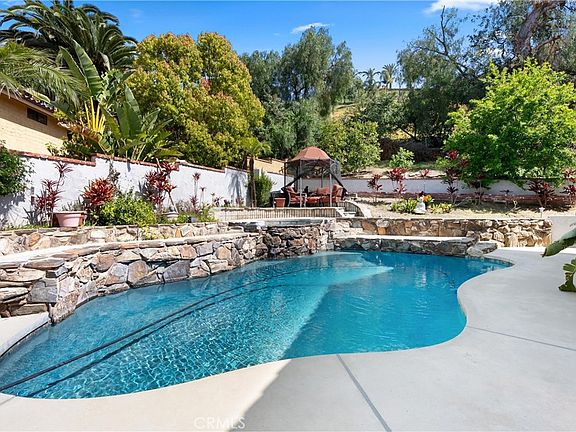 Welcome to 6270 E Arboretum Road, an exquisite residence nestled in the heart of Anaheim Hills, featuring a desirable downstairs bedroom among its five spacious bedrooms and three elegant baths, all within 3,200 square feet of meticulously designed living space. As you enter through the stunning French doors, you are greeted by a grand living room adorned with soaring cathedral ceilings that seamlessly transitions into a formal dining area—ideal for hosting gatherings. The heart of this residence is the inviting family room, complete with a cozy fireplace and open access to a gourmet kitchen equipped with KitchenAid appliances, light oak cabinets, and granite countertops. The large central island provides an ideal space for entertaining family and friends. The first floor also features a versatile office, a convenient powder bath, and a well-appointed laundry room for added practicality. Ascend to the upper level, where you'll discover four generously sized bedrooms bathed in natural light. The primary suite serves as a luxurious retreat, featuring double closets and a beautifully refinished ensuite bathroom equipped with a walk-in shower, separate tub, dual vanities, and a private laundry chute for convenience. All bathrooms have been tastefully upgraded, highlighting modern finishes, including a striking barn-door walk-in shower with pebble flooring in the full bath upstairs. Step outside to your own private oasis—a tastefully landscaped backyard enveloped by mature trees, providing a serene backdrop for the sparkling pool and spa. Recent upgrades enhance the value of this home, including a modern HVAC system for year-round comfort, a rejuvenated pool perfect for relaxation, and custom cabinetry throughout that adds both elegance and functionality.