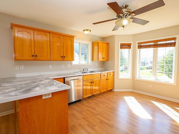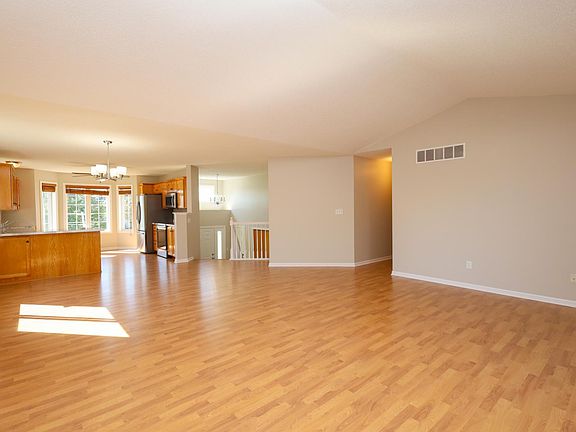 Step into modern living with this popular open concept design, featuring a spacious foyer, angled staircase, and vaulted ceilings. The kitchen, dining, and living areas are connected by sleek laminate floors, while a sliding glass door opens to the deck, overlooking the beautifully landscaped, fenced backyard. The primary suite includes a walk-in closet and private bath. Fresh paint throughout the entire home! The garage is also extra deep compared to the average garage for this style of home. The lower level offers additional bedrooms, a home office/5th bedroom, a full bath, and a large family room with new flooring. Located near bus lines, parks, and bike trails, this home is ready for you to move in.
