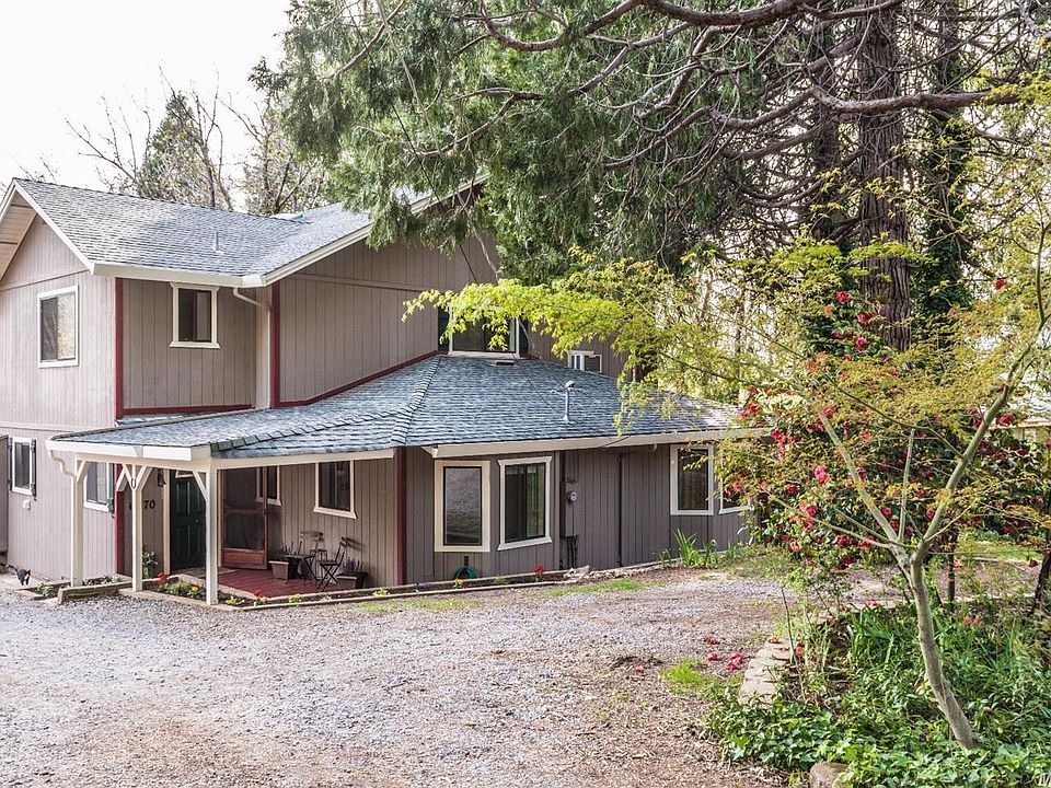 Close to town. 3/2 with great curb apeal. This home offers open floor plan downstairs, Large eat-in kitchen with wood floors,tile counters, built-in china hutch. Off the kitchen is laundry room w/large walk in pantry along w/ outside access to the spacious deck and fenced backyard. Living Rm has beautiful 20'cedar ceilings & large wood stove. Upstairs is a loft overlooking the main living area. The large master suite offers wlk in closet, private balcony along w/ lrg master bath w/ample storage
