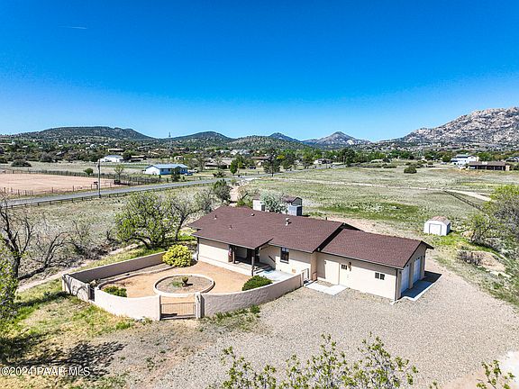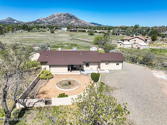 The previous Buyer was unable to sell their contingent home, so their loss is your gain! Here's your chance to make this one-of-a-kind home yours! Situated just close enough to everything for ease of living; but far enough to have that quiet rural peace. Featuring old-world charm, the well cared for home sits on nearly 3 acres of flat, usable land, and is set apart by it's 2 courtyards, a spacious split floor plan, and one of the most pristine views of Granite Mountain you could ever hope for. The 3 beds, and 2 bath home has undergone many upgrades which are listed on the attached Additional Features document. All completed within the last 3 years: new roof, HVAC, water heater, garden shed, detached garage/shop, and more! Horses are welcome, and so are you! Make an appointment today