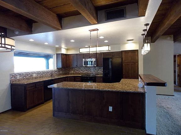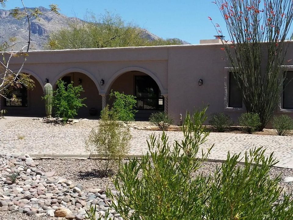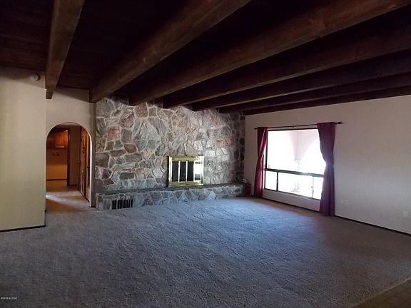 Warm spanish colonial home in desirable Shadow Hills with Catalina Foothills District 16 schools. Large great room features dramatic solid wood plank and beam ceilings and exceptional fireplace, perfect for entertaining. Eat-in kitchen, raised breakfast bar, upgraded cabinets, granite, glass back tile and LED lights. Split floorplan offers privacy, extra large master suite with beehive fireplace, huge bath/walk in tub area, large walk in closet and french doors onto patio. The two other bedrooms are both generous sized, 12' x 14', one with french doors onto the patio. The huge back yard offers block wall privacy, east facing cool evenings with stunning views of the Catalina mountains. Low maintenance yard with water harvesting. Long shady patio's and nice pavers great for entertaining.