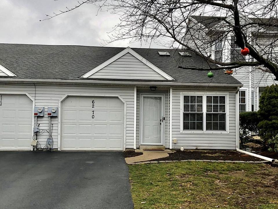 Enjoy one level living in this Spring Knoll Community. These units dont come on the market very often! This 3 bedroom, 1 1/2 bath is situated on a quiet street with private, fenced-in, backyard area bordering open farmland. You ll notice upon entering, the open design with hardwood floors and vaulted ceilings. The great rm/ dining area is spacious and accomodating. Sellers have added a extended bar area from the kitchen opening into the great room. The kitchen has space for a small table and includes stainless steel appliances. The main floor offers two generous bedrooms. Primary bedroom includes a walk-in closet and access to a full bath. Second bedroom is adjacent and the half bath is steps away. Both bedrooms have HW floors. Finished basement level with carpeted family room, and 3rd bedroom, currently used as an office, offer great versatility. Walkout lower level is convenient to the deck with enclosed privacy fence. Quiet backyard backs up to open space. New HVAC and one car garage an added bonus. Convenient location close to shopping, schools, and major routes.