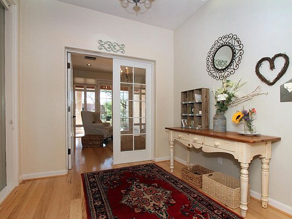 A rare find, elegant yet practical. This stunning custom Randel Jacob built home is Located on a beautifully wooded section of the Ridge Course (3rd fairway). Designed with touches from Santa Barbara & Sam Hughes, bright & open. Five bedrooms, two seperate wings, two Bedrooms being used as office/den and Parlor (Could be formal dining room, w-glass French doors and ''wall of windows''). Travertine and Hickory floors. Countertops offer ''Torreon'' (Travertine), Quartz & Granite plus Carrera Marble (Laundry room). Kitchen has Natural Cherry cabinets with lots of pullouts, large pantry and other built-ins. Incredibly private setting with covered Flagstone patios front & rear. All closets have built-in's. Like a page from Crate & Barrel & Pottery Barn!