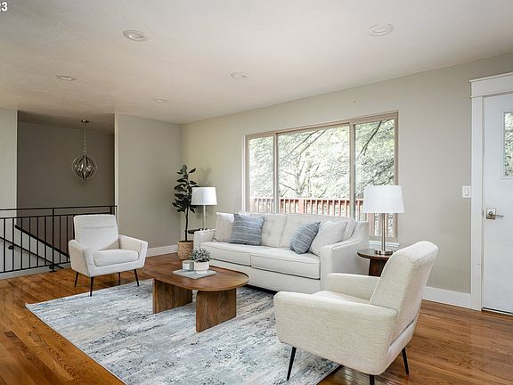 The beauty of being in nature without leaving the city! This captivating home offers a unique blend of serenity and convenience, with an abundance of lush trees visible from every window, creating a peaceful and tranquil setting. Inside, discover custom cabinetry and locally crafted Pratt & Larson tiles, and custom entry handrail by a local artisan. This 3 bedroom plus den/office home boasts two fireplaces-one plumbed for gas, with a reclaimed barn wood mantle, and the other wood-burning. The main level features newer solid hardwood floors that not only enhance the aesthetics but also provide durability and ease of maintenance. The fully renovated kitchen is a chef's dream, complete with natural quartzite countertops, a convenient hot water dispenser, and top-of-the-line Thermador Professional gas range & dishwasher. Access to the back deck makes grilling and outdoor dining a breeze, while the patio offers a delightful space for al fresco dinners. Both recently renovated bathrooms on main level boast custom deep drawer cabinetry, highly compressed ceramic counters, custom mirrors and shower enclosures and Carerra marble floors. Raised shower heads enhance your showering experience.The exterior features a recently painted facade and a low-maintenance flagstone patio, eliminating the need for mowing. Newer windows and upgraded electrical and plumbing systems enhance the home's functionality.Nestled across from George Himes Park, this home offers access to extensive hiking and running trails. Two Community Centers are nearby, providing excellent fitness facilities and swimming pools. Convenience reigns here, with nearby schools, pickleball courts, coffee shops, groceries, and the Hillsdale farmers market all just a stroll away. Fiber optic internet ensures seamless work-from-home days, and a bus stop across the street makes office commutes a breeze. It's the ideal fusion of nature and city living in this enchanting setting! [Home Energy Score = 7. HES Report at https://rpt.greenbuildingregistry.com/hes/OR10222483]
