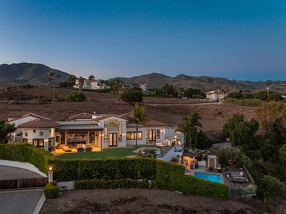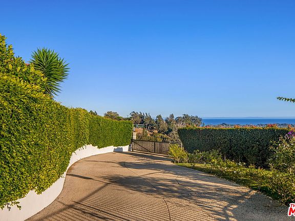 Sited near Point Dume, in the heart of Malibu, this gated, ocean view compound embodies five-star resort-style living and is configured to entertain. On a private half-acre, the grounds are designed to inspire both connection and escape, offering spaces to gather, unwind, thrill seek, and fully embrace the Malibu lifestyle. A large pool and jacuzzi accomodate relaxation, while expansive flat lawns provide ample room for play. With ocean views from nearly every vantage point, the single-story main residence consists of five bedrooms, seven bathrooms, plus an office/gym. Outdoor fireplaces and the poolside bar set the stage for evenings under the stars, while Tulum-inspired hideaways tucked behind lush, flowering entrances provide sites for meditation. The primary suite is a retreat of its own, complete with dual walk-in closets, a large soaking tub, and an oversized shower. The kitchen is equally impressive, outfitted with top-of-the-line Viking appliances and an oversized island. Complementing the main house, a detached two-story guest residence offers a private bedroom, living area, kitchenette, and full bath, creating a separate suite for visitors. Mature avocado, fig, lime, and lemon trees decorate the perimeter. A built-in trampoline, private skate park, and close proximity to some of SoCal's best surf breaks promote an active Malibu lifestyle. Motor-court parking and no neighbors on three sides of the property. All this, only moments from Soho Little Beach House, Nobu, and all that Cross Creek Living has to offer.