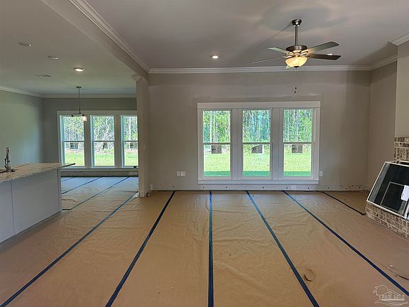 **Price Reduction!!** Last home in Whitley Estates that can close before the new school year! The Hickory is a stunning Signature level home w/ 4 bedrooms & 3 full baths. Nestled on a large 1/2 acre lot, this home is located in a quiet, highly desirable area of Pace. Loaded w/upgrades & high-end design details, the home features double 8ft. mahogany front doors, custom-made window and door casings, crown molding, smooth texture walls, 10 ft. ceilings in the entry, living & dining rooms, wainscoting in the dining room, granite countertops throughout, custom-built cabinetry, solid wood shelving, built in mud bench, & continuous EVP flooring in main living areas and master bedroom. The master suite boasts many luxurious elements such as a tall tray ceiling in the bedroom, LED recessed lighting, large tiled shower w/frameless glass door, separate soaking tub w/tiled surround, double vanity & a large walk in closet. Featuring Samsung appliances, the kitchen includes a split gas cooktop, dishwasher, & built-in microwave & wall oven. In the kitchen, you will also find a pantry w/solid wood shelving, soft-close cabinets & drawers, undermount sink, subway tile backsplash, & a large island. Additional upgrades featured in the home include a 42" gas fireplace, floor outlet in living room, and a TANKLESS gas water heater - never run out of hot water! The included Connect Home pkg provides the home w/Smart light switches, Ring doorbell, Ring outdoor camera, Smart thermostat, Smart wifi garage door opener, a Smart Things Hub, and a tablet! The unique design details of this home spill from the inside, out. On the exterior, you will find LED recessed lighting in the front eaves, custom built shutters, Low-E windows, hurricane window protection, irrigation system, natural gas drop on back porch, & beautifully stained V-groove Pine ceilings under both the front and back porches! Est completion June 2023.