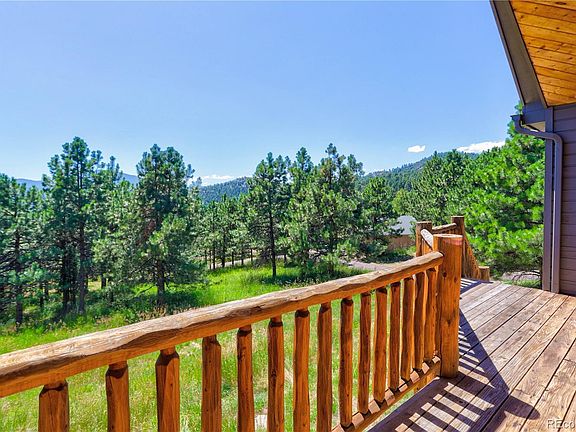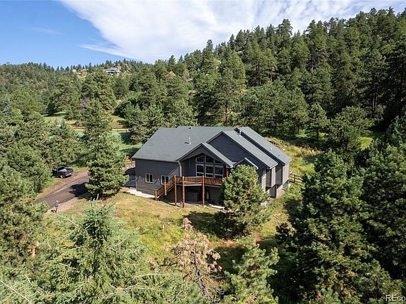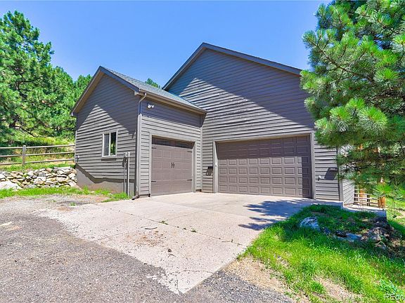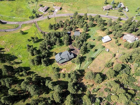 Tucked behind your curtains of ponderosa and bordering 160 acres of accessible county land on the east you will find seclusion and privacy for you and your critters. The large 2 stall barn with tack room and the 2-story home have fresh stain to match. Located on a gentle, south facing hillside, the views across the rolling valley to the distant hills and mountains are quite compelling. The home offers complete main level living on the upper level with the primary suite in one wing and 2 bedrooms in the other with the vaulted great room and kitchen with wrapping island for work and eating space in between. The lower level is an “in-law” floorplan with a bedroom, office, bath, and mini-great room. Office & rec room (4th & 5th bedrooms?) Each level has a separate exterior entrance. There is an oversized 2 car garage with loft storage and a third large bay with chain hoist included. Cross fencing creates 3 lush areas plus the corral should you want animals on your A-2 zoned grounds. You can reach the west Denver metro area in less than 15 minutes for one of the most convenient access locations in the foothills. A carpet allowance is available.