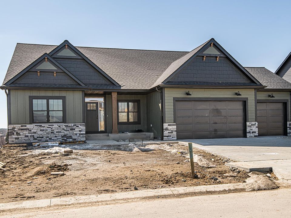 Just completed, this home boast an open floor plan on a walkout lot with great views. The main floor has large master with 2 addition bedrooms, nice size laundry with lockers and a barn door for separation. LVP flooring from the front door down the hall opening up into the living room and kitchen area with large windows and 9' wide patio door opening onto a covered screened maintenance free deck. Built-ins flanking the fireplace with a coffer ceiling. The lower level has 2 more large bedrooms and an office with french doors, opening up into the family room. The very large family room has a nice corner fireplace and wet bar.