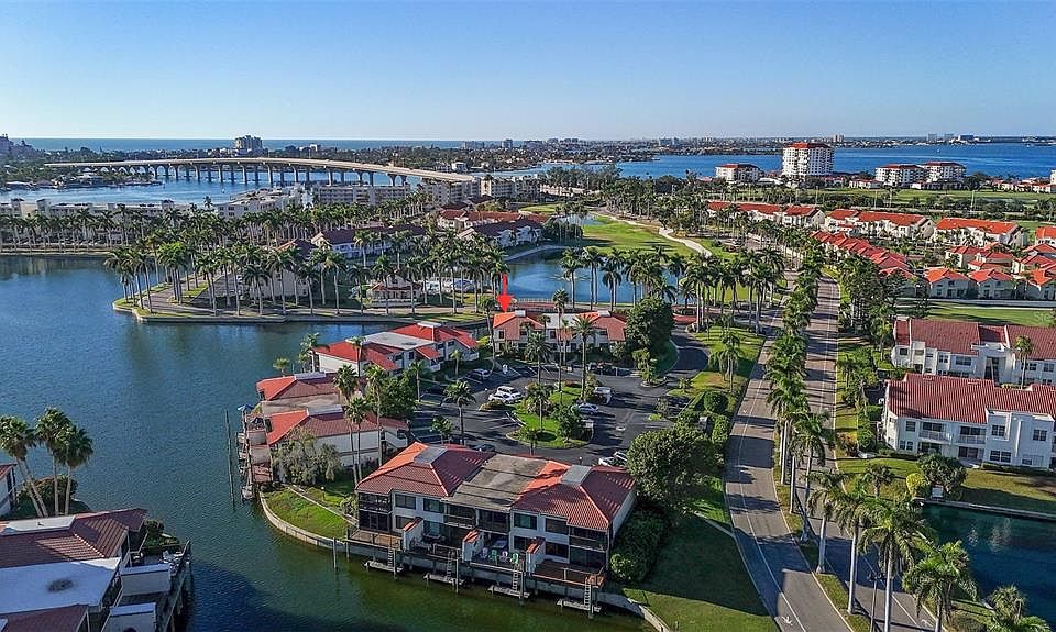 Live the Good Life at Bahia Del Mar! Wake up to tranquil lake views, swaying palm trees, and the iconic 8th hole of Isla Del Sol’s championship golf course from this first-floor lakeside villa in Bahia Del Mar. Step inside and feel instantly at ease — the open, light-filled layout features cool tile floors, updated stainless-steel appliances, and a breakfast bar perfect for morning coffee or casual gatherings. The spacious living and dining areas open onto a large screened lanai and sunny sundeck, offering the perfect spot to relax and take in the sparkling lake and fountain views. Your primary suite is a peaceful retreat with a walk-in closet and gorgeous updated bath. Guests will love their own private suite with an upgraded bath as well! Outside, enjoy resort-style amenities — a seaside pool and spa, recreation areas, and the island lifestyle that Isla Del Sol is famous for. With a championship 18-hole golf course, clubhouse, tennis courts, fitness center, and marina (separate memberships), every day feels like a vacation. Just minutes from Gulf beaches, Fort De Soto Park, and the Pinellas Bike Trail, this is your chance to own a slice of paradise — only 15 minutes to downtown St. Petersburg and 25 to Tampa International Airport. Start living the good life in Isla Del Sol today!