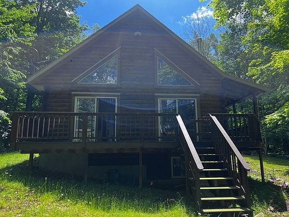 Welcome to your serene lakeside retreat nestled on 47 acre no-wake Camp Six Lake! This charming property offers the perfect blend of rustic charm and modern comfort, boasting 3 bedrooms and 1 bathroom with 1,125 square feet of cozy living space. Situated on a 2.31 acre lot with 100' of frontage on Camp Six Lake, this home is a nature lover's paradise. This home features a 1-story layout with a loft, complemented by beautiful log siding and soaring cathedral ceilings. This property also features a two-car detached garage providing ample storage for your vehicles or for housing your toys. The level lot makes it a perfect destination for hosting a lakeside barbecue, or relaxing under the sun on the pier. This home offers privacy and seclusion while being close to amenities and recreational activities nearby. This property offers endless opportunities for making memories with family and friends, don't miss out!