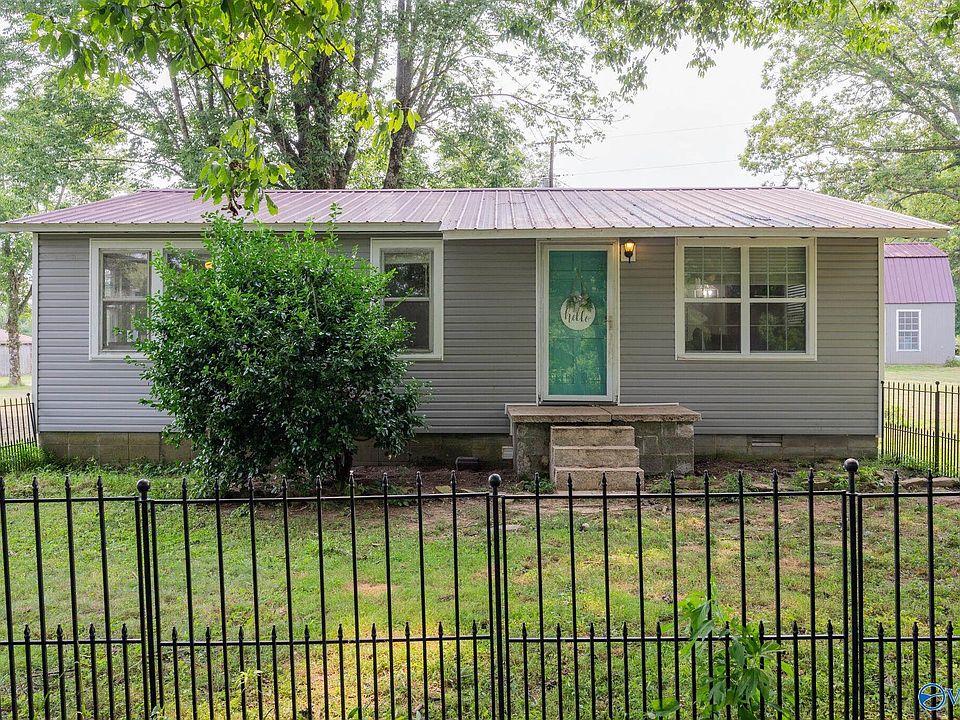 Adorable property is located 15 minutes from downtown Scottsboro and 45 minutes to Huntsville. Gorgeous mountain views in a peaceful country setting. This cottage has new siding, new flooring and storm shelter and fiber internet. The 2 bedroom/1 bath home sets on an acre and has established raised gardens, chicken coop and a huge detached garage with loft storage.