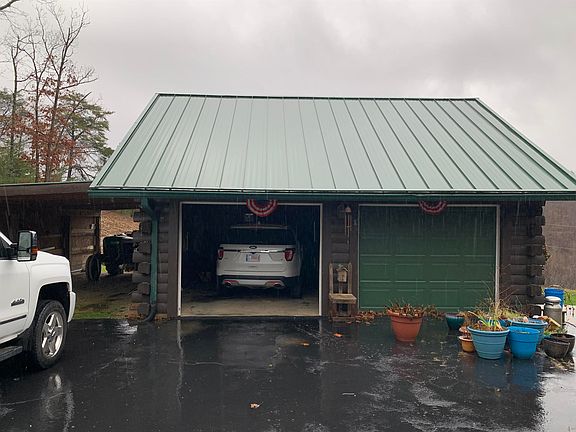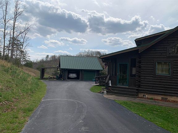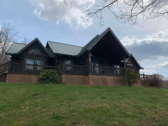 This stunning log cabin surrounded by woods has the stone fireplace to enhance the outdoor feel, a large kitchen with lots of storage, two master suites on the first floor, a large gathering room. The home has 8 inch logs to aid in energy effecincy and a commercial-grade, standing-seam metal roof. It's nestled on around 9 acres, has a 2 car garage with extra storage. Below the home is extra water, septic and electric hookups to add a barn or building. All of this with the feel of the county but still close to downtown Grayson and Boyd County.