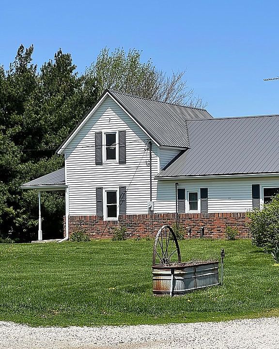 For sale by owner. Priced reduced! Added more land as shown in photos with approximate layout. Realtor may view the property to bring potential buyers. Will cover buyer side fee. Secluded 3.5 acre homestead located in northern Union County, Indiana. Move-in ready and set up to begin all your homesteading dreams. The 1.5 story, 2250 square feet farmhouse includes three bedrooms, two full baths, kitchen updated with cherry cabinetry made in southern Indiana, cedar beams, track lighting, and skylight. The 24 x 21 foot addition has a mudroom entrance, an office and a family room surrounded with windows. The metal roof adds a beautiful look to the homestead. Three porches anchor the farmhouse providing views of planted fields, pastures and beautiful sunrises and sunsets. The property has a 40 x 60 foot Amish built barn with 10 x 60 livestock shelter, water and electric. Three sliding doors offer easy access to the barn. The three bay garage provides space for storage and protection for your vehicles. The homestead is beautifully landscaped with maple, pine, spruce (which provides windbreak) peach tree, tulip tree, asparagus patch, raised garden beds, burning bushes, clematis, hydrangeas,irises, tulips and sedum. The third building was used for raising poultry and small animals and is set up for their safety from predators. Farmhouse property details: 3 heat sources: Heat pump, propane, and Central Boiler outdoor wood burner. Central air. Generator hook up. RO water filter system. Appliances included: fridge,gas range, dishwasher, microwave. Water softener. 12 x 30 foot basement. Replaced all windows with energy efficient windows. New gutters on house, garage and barn. 15 foot above ground pool with filter, ladder, solar and winter covers. Swing set, tractor tire sand box. Rural WiFi works really good in this area. House and garage set on approximately, barn and poultry building sets on approximately 2 acres. Driveway consists of approximately half acre. A great place to raise your family and enjoy the blessings of living a homesteading life!! Serious inquiries only. By appointment only. Read Less
