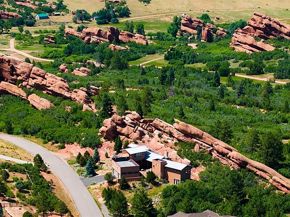 UNPARALLELED Architecturally Designed Contemporary Home, on UNEQUIVICOL Site of Sandstone Red Rock Formations, w/ 360o views, offers the Quintessential Colorado Experience in the Secluded Sought-after Perry Park Ranch enclave!!! This BREATHTAKING Home is Located minutes from Perry Park Golf Course/Country Club which was named “Best Denver Region Private Club” in 2024 by Colorado Avid Golfer; offers Full, Junior, Professional & Social Memberships. Directly across is the Perry Park Ranch Stables w/ Horse boarding, Training, and Horseback riding lessons. The Site is also located minutes from the Foothills of Pike Nat. Forest where hiking, biking and horseback riding abound. Main Exterior Courtyard offers direct connections to the Main Living Areas so the Exterior/Interior Environments meld into one. Entering the Main Living Room, w/ 10' Ceilings throughout, you see directly to the Red Sandstone Rocks & the Gas Fireplace. The adjacent Courtyard Entry, takes you to the Dining/Entertaining Area & Gas Fireplace, then through to a Side Exterior Patio directly under the Sandstone Rocks, Pines, Junipers and Columbines. Side Exterior Patio is connected to adjacent large Kitchen w/Custom Cherry Cabinets, Sub-Zero Refrig, Island, Pantry & yet more Views of the Red Rocks. The Main Level Master w/flr to clg windows w/INCREDIBLE VIEWS of the RedRocks has EnSuite Bath w/Walk-in Shower, Soaking Tub & Walk-in Closets. Lower Walk-out Level includes a huge Family Room/Studio/Office/Work Shop with direct access to the Lower Level Patio. Also includes 2 Full Bathrooms, 2 Egress compliant Bedrooms and Large Utility Room with newer High Efficiency Boiler & Copper Tubing for Radiant Heat throughout the entire Home. The Secluded Upper Level can serve as a 2nd Master Bedroom/Office, with access to Upper Rooftop Deck w/Speakers, Gas & Elec. for the Ultimate in Entertaining enjoying the STUNNING REDROCK VIEWS! ONE OF THE MOST UNIQUE & SPECTACULAR PROPERTIES ALONG THE ENTIRE FRONT RANGE!!!!!!!!