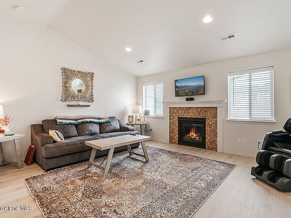 Check out this awesome pre-inspected 1412 square ft. single level rancher with views of Rathdrum Mountain! Pride of ownership reflects in this 3 bedroom, 2 bath home offering beautiful new luxury vinyl plank flooring, vaulted ceilings in the great room with a beautiful gas fireplace to cozy up to when it's chilly, the kitchen will not disappoint with a dining area, stainless steel appliances, a kitchen island with a breakfast bar for extra seating, and a large pantry for ample storage! The master bedroom has 2 walk-in closets, and the large master bath offers dual sinks! You will love and enjoy the large covered back patio for shade and entertaining on those hot summer days and inclement weather! Fully fenced and landscaped with beds, front and back yard sprinkler system for convenience, front storm door for extra security, and a 8x12 Tuff shed painted to match the house for whatever your storage needs may be! Spring photos coming soon! This one won't last long!