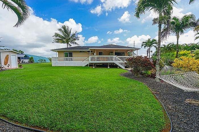 HEALTHY HOME ON ALMOST 4 ACRES! Drive up Waipouli Road and you can see pastures on one side and waterfalls in front of you. On 3.9 acres, set back from the road over a large flat palm-tree decorated front yard, you can sit on the wrap-around lanai and enjoy the clear trade winds and amazing unobstructed views of Kalalea Mountain over pastures. This quiet and peaceful open concept 3 bedroom, 2 bathroom home is in excellent condition, with orchid rock gardens and spa-like appointments including a hammock, hot tub and gazebo. Entertain on the large private back lanai, or have a lawn party on the large flat grassy front lawn. The single-level house is easy to maintain, and while it's only 1200 SQ feet, with the lanais it feels like 1600. Additionally included is a commercial kitchen facility, which is so separated from the property that it feels like a neighbor, with its own parking area out of sight of the home. It's rented to a local agricultural business, and is an excellent source of income. Currently the house is rented month to month to some lovely tenants, so you have several options. Take advantage of the today's record-low interest rates! The Wailua Homesteads are conveniently located 20 minutes from the airport and Lihue, and less than 15 minutes to beaches and Kapaa town, with shopping, the coastal bike path, farmers markets, and Lydgate Beach.