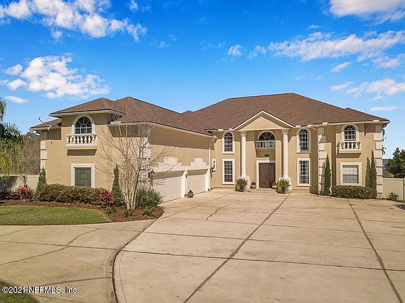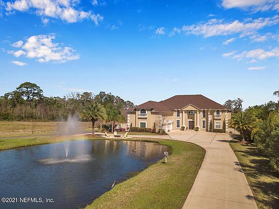 Just picture yourself reaching the end of the cul de sac, driving up this magnificently long driveway overlooking a beautiful freshwater pond with fountain to arrive at this spacious riverfront home measuring over 8400 sq ft., sitting on 2.2 acres of property, located on the St. John's River complete with spectacular views of the Dames Point Bridge, Cruise Ports and so Much More!! And Wait.. YES a dock permit has already been secured! This spacious 8 bedroom, 6 bathroom home, centrally located 15 minutes to downtown and beaches, offers an open layout, 2 master bedrooms, garden baths, 3 fireplaces, 2 covered porches, theater room, and a 4-car garage just to get started.
