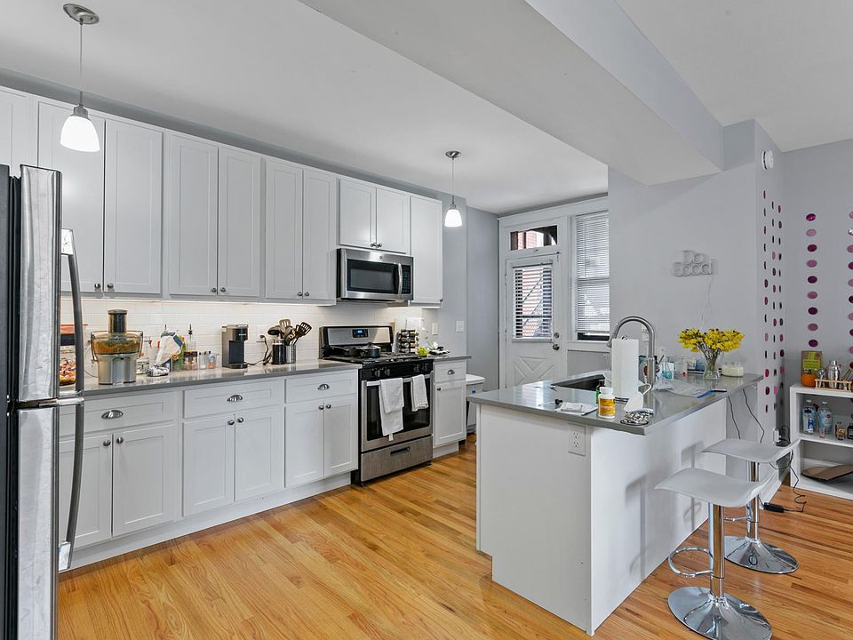 3rd Floor AVAILABLE - July 2022. These huge 3 bedroom, 2 bathroom units have been gut renovated, including all newer plumbing, electric, HVAC, hardwood floors, 42" shaker cabinets, quartz countertops, and stainless steel appliances (refrigerator, dishwasher, range and microwave). Each apartment has in-unit laundry and large kitchen islands. There is reserved, off-street parking behind the building and secure access in both the front and back. Owner Pays: Water, Sewer, Trash and Yard.