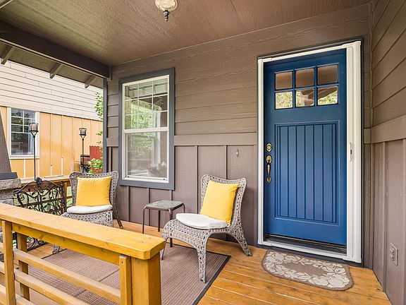 A delightful tree-lined street, a quintessential covered front porch, and a sublime backyard sanctuary set the stage for this beautifully updated home. The exterior has been freshly painted, adding to its charm, and the home boast a new hot water heater. Inside, the open-concept living area flows over new engineered hardwood floors, anchored by a cozy gas fireplace with custom mantel and built-ins. The renovated kitchen includes stunning leathered Brazilian quartz countertops and newly painted cabinetry. The primary suite, with vaulted ceilings and a dual vanity bathroom, is well-separated from two guest bedrooms. Enjoy the lushly landscaped front yard and private back patio with mature plantings, shady trees, and a maintenance-free drip system. The attached two-car garage offers ample storage, cabinets, a workbench, and an attic space with a plywood floor for additional options. This home provides a perfect blend of beauty, comfort, and functionality.