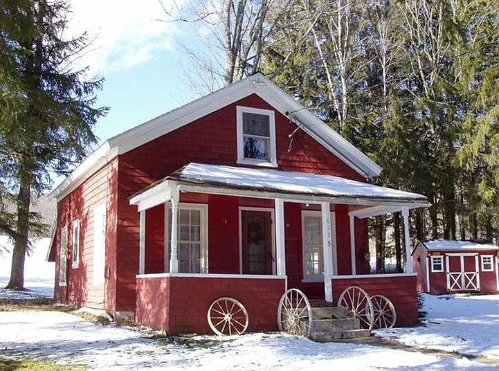 CIRCA 1925 SCHOOLHOUSE - Charming converted schoolhouse has been tastefully renovated for full-time or weekend living. It features a front porch, spacious living room with laminate wood floor and an eat-in country kitchen with antique style pressed tin backsplash. Three bedrooms and bath. Mud room'' and utility room. Oil-fired hot water baseboard heat, drilled well and DEP approved septic system. Two storage sheds. Nice yard with age old spruce trees. Property is on both sides of a quiet town-maintained road and is bordered by a large 250+ acre property. Just minutes from mid-town Andes''. Taxes: Approximately $1,770/year.