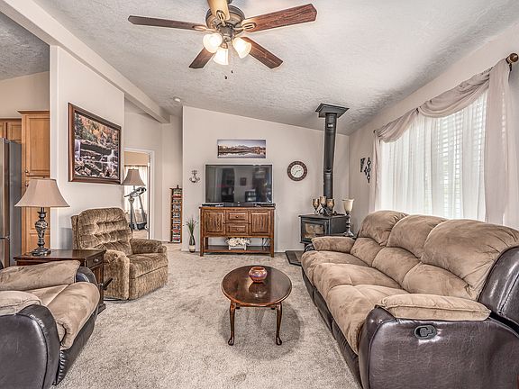 Fantastic double wide situated on 1 full acre with a 30 x 40 shop! Shop is insulated and heated (propane) and has an RV door and 50 amp hook up. Gorgeous updated kitchen with laminate flooring and stainless appliances. Large master with 3/4 bath and walk-in closet. Completely fenced backyard with deck and covered patio. Wonderfully landscaped! Click on the virtual tour link for a full 3-D walk-through tour!
