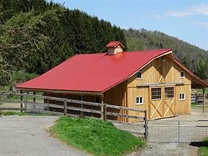 FARMETTE with BRAND NEW BARN! 19 Surveyed Acres on outskirts of small rural village. Fenced for sheep & goats and could easily accommodate HORSES by finishing a couple of box stalls. Barn has Dutch doors and easy end-to-end drive through (sliding doors at each end). Small stock pond on property. Comfortable farmhouse has a NEW METAL ROOF and New Vinyl Siding and BEAUTIFULLY REFINISHED HARDWOOD FLOORS. Downstairs bedroom (now being used as study/office) if needed. Large dining room with Built-In cupboards & gas fireplace. Living room has gas fireplace, too! Great WRAP AROUND FRONT DECK, SIDE DECK and back mud room. 3-Bay detached garage, run-in shed(s) and chicken coop.