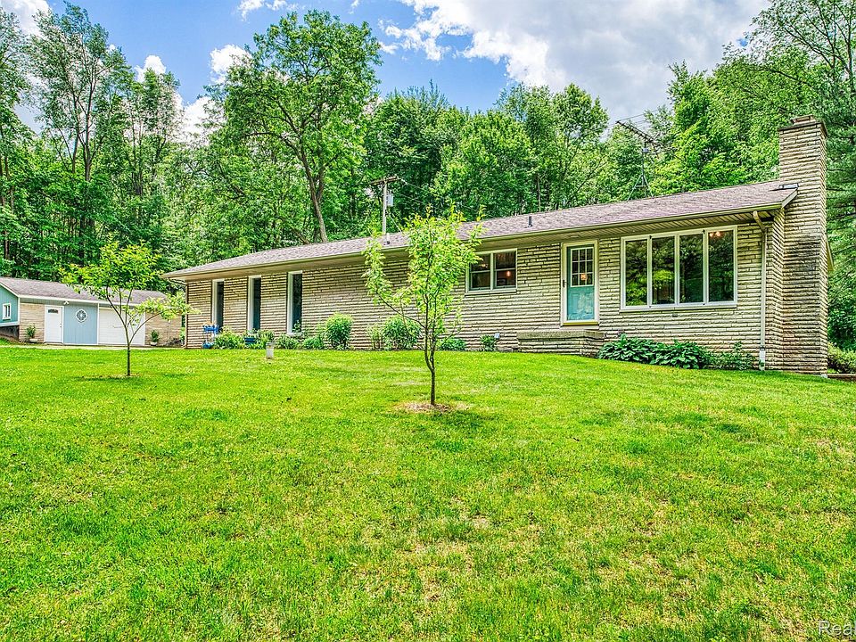 With a TOTAL S.F. living space of *2,400* this solid brick ranch on **8.99** acres and just off pavement offers all of the above: three bedrooms and three full baths, a large open kitchen, a finished walk-out basement with new carpet and paint, and it's even plumbed for a wet bar. Make the open-canvased basement your personal relaxation area (the outside patio would be perfect for a jacuzzi), game room, workout area, office, or additional living space. It only needs your personal touch. You will also find a detached one-car garage or work area for your craft room or workshop. There are several fruit trees, such as sweet cherry, apple, pear, and peach! Time to learn how to can or bake delicious pies! WELCOME TO SOLITUDE, but close to town and the freeway for easy access to Ann Arbor and Lansing. Take your pick! See you soon!