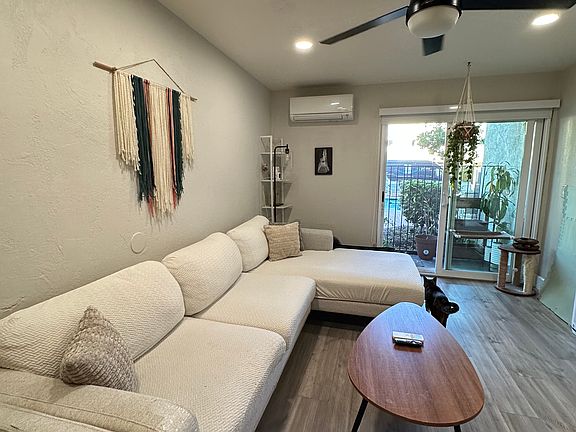 Discover convenient living in this updated 1-bedroom, 1-bathroom condo, ideally situated in the Mission Valley neighborhood of San Diego. Located within a short walking distance to Snapdragon Stadium and a nearby trolley station, this home offers easy access to events, entertainment, and city-wide transportation. The interior features updated appliances and a modern air conditioning system for comfort throughout the year. Residents also benefit from access to community amenities, including a refreshing pool and a relaxing hot tub. This condo provides a practical and comfortable base for those seeking a well-connected San Diego lifestyle. 12 month lease. Renter responsible for utilities and WiFi. 2 parking spaces included.