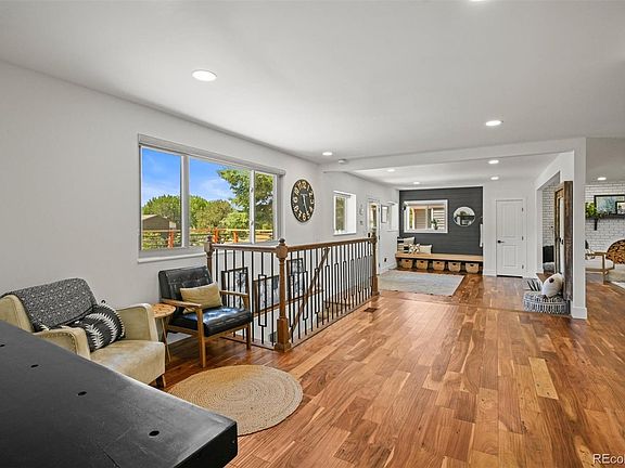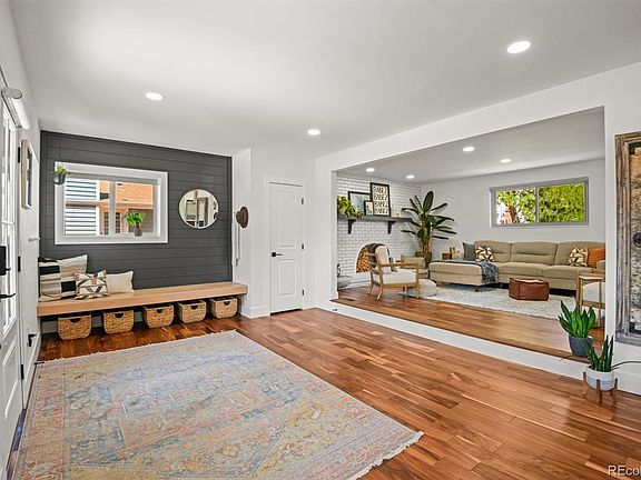 The spacious main level features gorgeous engineered hardwood floors, designer finishes throughout, a welcoming foyer with a custom built-in bench, a gourmet kitchen with stainless Bosch appliances & quartz countertops, a primary suite with a lush bathroom that has doubles sinks & a substantial walk-in shower, 2 additional bedrooms & a full bathroom. The main level leads to the relaxing backyard with a covered patio, garden area, spacious shed, and mature trees. The front porch which welcomes you inside is the most distinctive feature of this home and allows enjoying spectacular mountain views & vibrant Rocky Mountain sunsets.