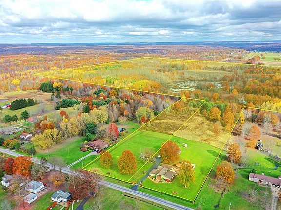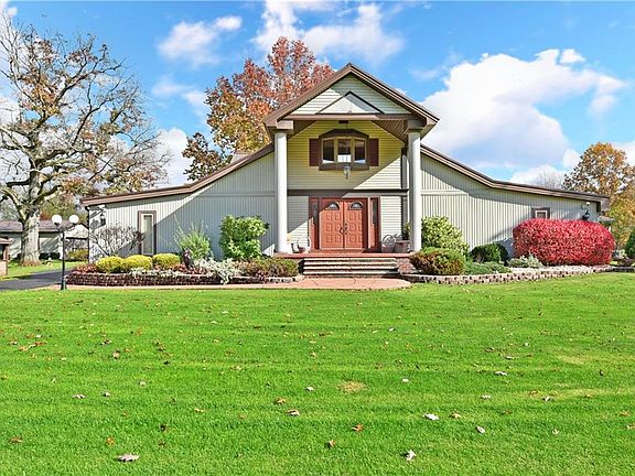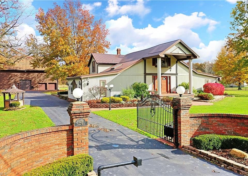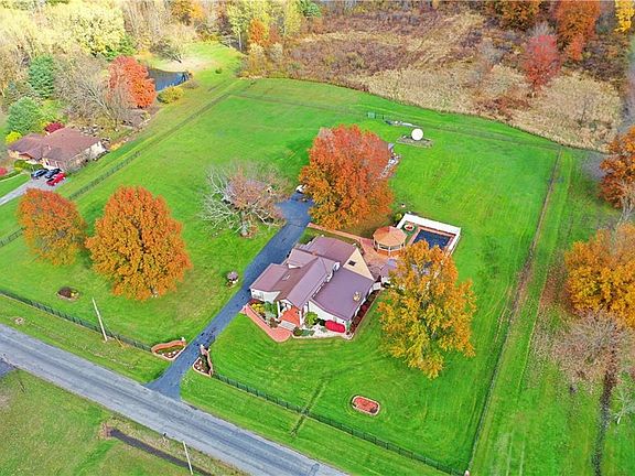 An estate to truly behold; this massive, 60+ acre opportunity includes not only a unique, two story home, but free gas, inground pool, pool house, gazebo, detached two car garage and 50x42 three story, seven bay barn with a finished third floor! A total package unlike any other. A wrought iron fence offers a stunning brick entry with security gate to surround the immediate property. A grand entry is found at the end of a bespoke stone walkway. Inside the home, a stunning blend of woodwork and creative architecture take you through a sprawling 4-5 bedroom layout that includes a substantial first floor master suite and a pair of conjoining loft overlooks that make easy additional bonus living/office space. A robust central kitchen highlights a fantastic brick archway surrounding the oven as long running countertops join the stained wood cabinets. A personal dining nook sits across from formal dining as the lower living room with a brick fireplace peers out from below. The showstopper however is the massive rear great room, built for entertainment and relaxation alike, containing dining and a full bath but also an extravagant stone gas fireplace, additional family room, bar and pool hall. All easily enjoyed from the indoor hot tub. Additional features: first floor laundry area, metal roof 2018, furnace/AC (2) 2020, HWT 2014, water softener 2012, whole house natural gas generator 2020, glass pool filter & heater 2020, and so much more! Ask agent for the list of updates!