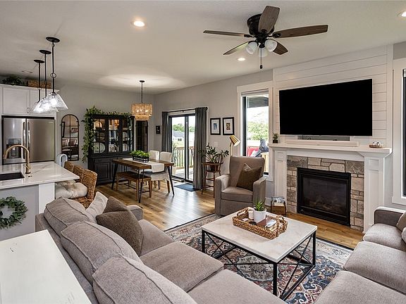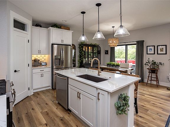 Come see the Leto Built Homes modern elevation ranch plan, the Edgewood 2. This 4BR, 3BA home offers over 2,100 sf of finish overlooking a beautiful view of the golf course green from the covered patio. Enjoy the difference of quality & detail of hands-on local family builder w/in a world of production built homes. You will LOVE the bright, open floor plan w/custom finishes throughout! The LVP flooring featured through main level leads past 2 front bedrooms & full bath. Oversized 3 car garage leads into the drop zone w/lockers & separate laundry space. You will be welcomed into the open great room w/fireplace flowing right into the gorgeous kitchen. White cabinets, accented island, quartz counters, tile backsplash & stainless appliances give the space a lux look. Bright finished basement with daylight windows will impress with a family room, full bath, additional bedroom and plenty of storage. Fantastic location next to Woodland Hills Golf Course and lower taxes!