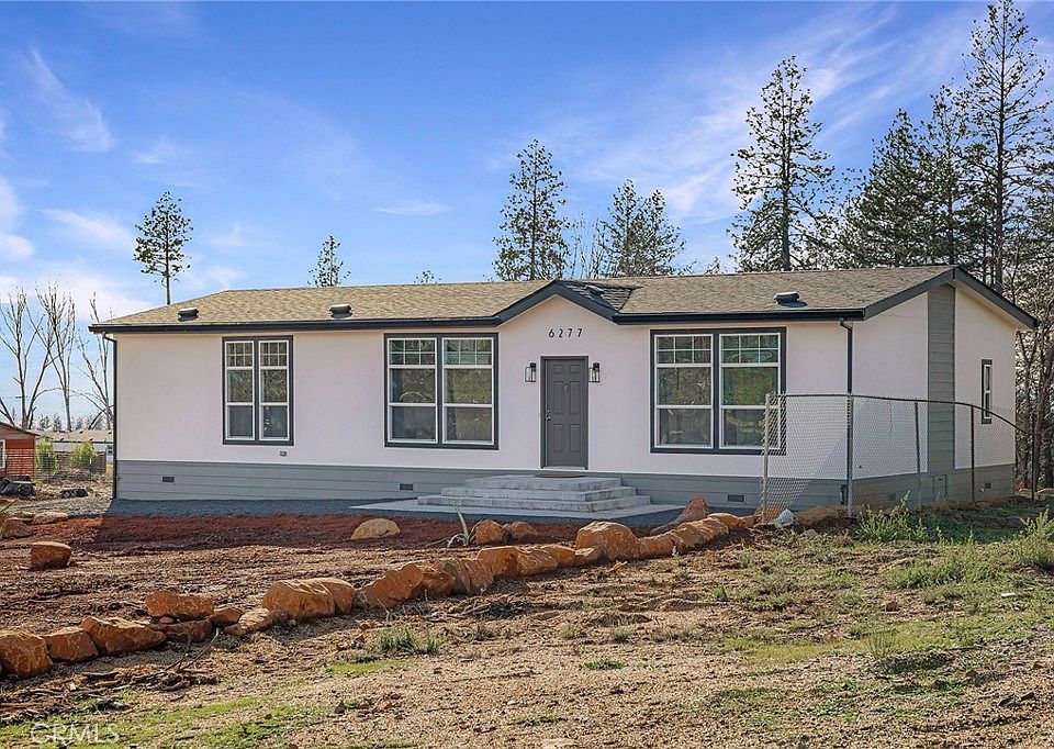 This upgraded manufactured home is ready for a new owner. This home offers 3 bedrooms, 2 baths with 1512 square ft. on a spacious .55 acre lot. This home offers split master floor plan. This open floor plan design offers 9ft. ceilings throughout & large transom windows. The kitchen overlooks the living room and dining room. The kitchen has tons of cabinets, shaker style fronts, stainless appliances, 4X8 kitchen island with cabinets, breakfast bar, granite counter tops, built in microwave, extra L.E.D. recessed lights and upgraded stainless refrigerator! The spacious primary bedroom offers a walk in closet. Primary bath offers dual sink vanity, granite counters, linen shelves and a step in shower. The guest bedrooms are spacious. Both guest bedrooms have walk in closets. Inside laundry room with gas or electric hook-ups. Nice 10ft X 18ft. concrete porch and stairs to the front door. Rain gutters. Exterior siding is cement board. Plenty of room for trailer, boat or R.V. parking! Room to add a garage or shop!