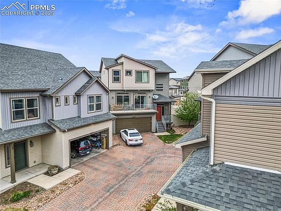 Modern Loft-Style Living with Mountain Views! Bright and open with 9-ft ceilings, stylish niches, farmhouse doors, and smart use of glass and windows for amazing light and flow. Chef’s kitchen features a massive 6x7 ft island, granite counters, white cabinets, pantry, tile backsplash, and walkout to grilling deck with mountain views. Enjoy two decks, wood floors, upgraded carpet, and a spacious family/media room with backyard walkout. The primary suite offers a spa shower, raised double vanity, granite counters, and walk-in closet. Upgrades include: accent windows, open stair risers, extended island, loft-style secondary bedroom, central AC, electric fireplace, raised TV outlets, alarm system, upgraded landscaping, and window coverings. Low-maintenance exterior with HOA-covered front landscaping and snow removal. Rec center, parks, and trails included. Walk to top-rated Banning Lewis Ranch Academy! Property does need some TLC. New Basement Flooring