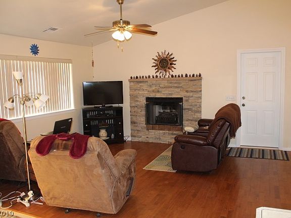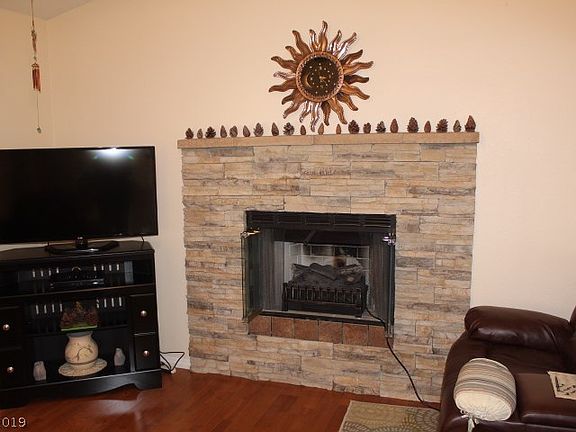 Own this lovely home in Beautiful Artesia! Corner lot in Culdesac, great Views of Mt Charleston. Open Living Rm w/FirePlace -Kitchen w/ Breakfast Bar, Pantry,all appl stay-Dining Area w/views~Vlted Ceiling, 3 Bedrms +Sep. Office/Den~Sep Master w/ Walk in Closet & own Bath~ Sep Laundry Rm 6x12 (may not be incld in Sq Ft). Wood-look flooring Living area & Master, 2 Car Gar, Covered Patio front & back, Room for RV Parking. Don't Miss this home!