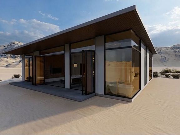 King of The Hill! Rare opportunity to own a stunning 5-acre parcel bordering Joshua Tree National Park with sweeping 360 views. Sale includes approved plans for a 1,550 SF modern home, 700 SF ADU, and a luxurious pool with kids' pool. Well installed 2022. Nestled in the serene desert landscape, this property offers breathtaking mountain views and privacy, perfect for a personal retreat or vacation rental. With permits ready, you can begin building immediately. Enjoy seamless indoor-outdoor living with designs that maximize the natural beauty of the surroundings. Minutes from Yucca Valley amenities and Pioneertown, this is the ultimate desert living experience. Don't miss your chance to create your dream oasis adjacent to Joshua Tree. Plans available upon request.