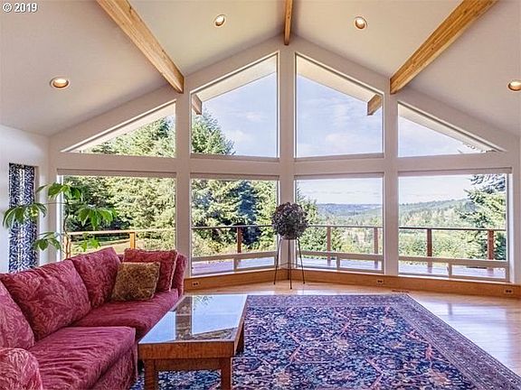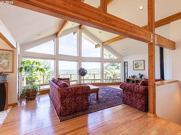 Located in desirable Blue Ridge area, bordering miles of forest. Quiet, private, unique custom prow style roof daylight basement home offers mild climate above the fog. Entire West face shows ocean, bay, valley views with brilliant sunsets.Port Orford Cedar wraparound deck, saltwater spa add enjoyment.Roof, Updated 2019, European wet room, solar water heating, ideal for extended family. Priced below recent appraisal. See VIDEO!