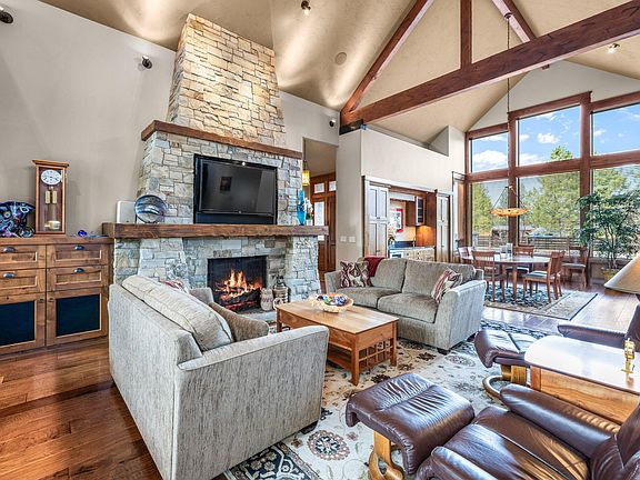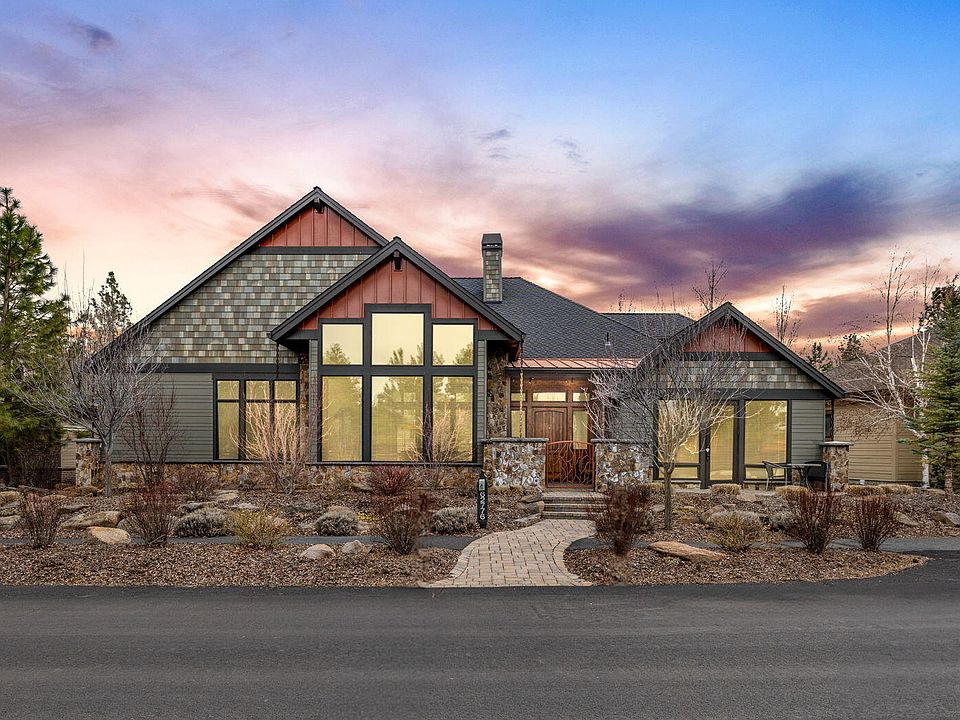 Discover unparalleled craftsmanship in this custom home by Artisan Homes & Design. Reflecting the highest levels of finishes, this bright & airy mountain home features a main level primary suite, 2 guest en'suites, office nook, formal dining & an upstairs bonus room. Lovely curb appeal and gated front courtyard lead to welcoming entryway opening to spacious great room w/ soaring post & beam ceilings, floor to ceiling fireplace & walls of windows on each side; ideal for relaxation, as well as entertaining in adj dining room w/wet bar, wine fridge & buffet. The nearby chef's kitchen provides an easy flow, exceptional appliances, 2 islands: one for food prep & one w/ dual sided bar seating. The office nook has access to large outdoor paver patio. Beautiful primary suite enjoys outdoor patio access & a luxurious bath. 2 full en-suite guest suites provide peaceful accommodations for family & guests Nestled in serene 3-Pines neighborhood, w/walking & biking trails & ½ mile to Shevlin Park.