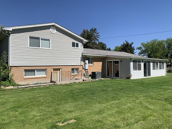 **PRICE DROP! MOTIVATED SELLERS!** This cozy, updated tri-level home has many features to love. The original hardwood floors were refinished in 2021, an HVAC system installed, kitchen updates, newer paint, trim & doors, vinyl windows and water heater. The sunroom on the east side of the house is great extra room for dining, office space, plant growing, playroom, etc. There is also extra room in the basement for a craft room, an extra bedroom if needed or extra storage. The large yard is fenced and cross fenced for your animals, there is a fenced garden area, raspberry bushes, a fenced area for poultry, a gazebo and fruit trees. The 805 square foot guest house has historically been used as a kitchen with an office space and 3/4 bath. This could easily be used as extra living quarters for multi-generational living or a rental. The south side of the guest house has a covered exterior storage/carport area. The HOA owned irrigation water takes care of the lawn and garden with an automatic sprinkler system. There is a second irrigation gate that supplies the back of the lot which could be turned into pasture for animals. A four-camera security system is also included. This property has an assumable VA loan at the interest rate of 2.625%, Call for details