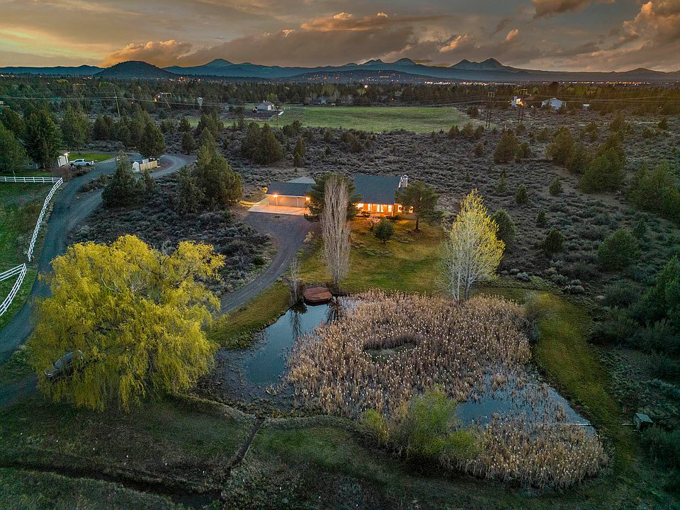 A rare opportunity to own just under 10 acres, minutes from Bend! Enjoy the Cascade Mountain views, abundant wildlife & the beautiful sunrise overlooking the 6.5acre irrigated field & pond. This home offers plenty of space and is ready for you to make it your own. The primary bedroom is