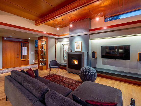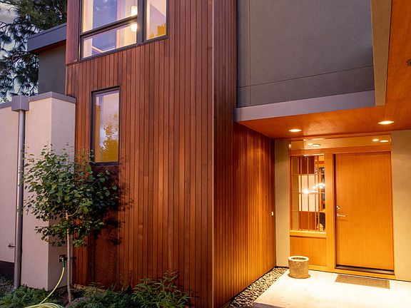 This contemporary, modern, green structure, designed by local architect Erik Oldham, and built by Woodcraft Environmental Builders, fits well within Shevlin Commons, Bend's most architecturally modern residential community. Well thought out design which focuses on function and environmental concerns. Built in 2014, it received a Platinum Certification from Earth Advantage for energy & resource efficiency and indoor air quality. A jewel box of artistic details soften the modern lines & make it a home. Kitchen, living, dining, flex-bedroom & master suite are all located on the ground floor. Beautiful interior finishes include 11.5 ft ceiling of exposed double beams, paneled with Douglas fir, rift cut white oak floors, pellet fireplace, quartz & black granite counter tops, Douglas fir cabinets, Miele dishwasher, Wolf oven & cook top, Subzero refrigerator, large walk-in pantry, Shoji style sliding doors, cable lighting & clearstory windows. Abundant natural light & warm southern exposure.